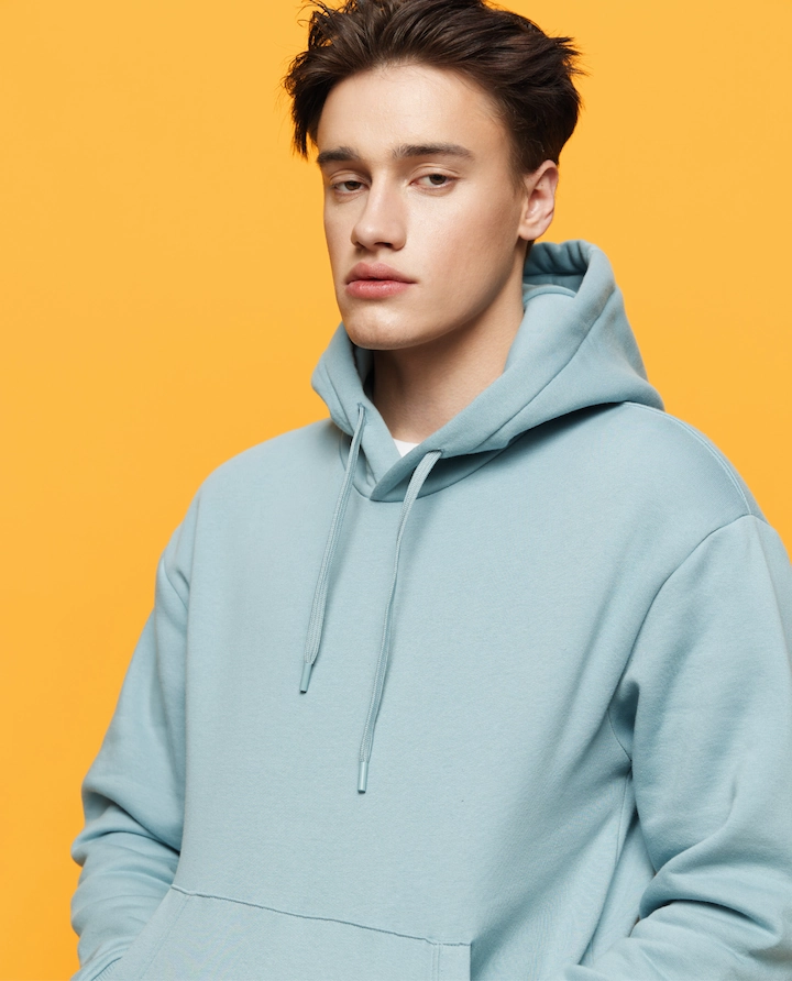 Stylish without zip hoodie made from a cotton–polyester blend with a brushed French terry interior for warmth and a soft touch. Each piece is dyed with eco-friendly chemicals, ensuring vibrant colors that stay bright wash after wash.