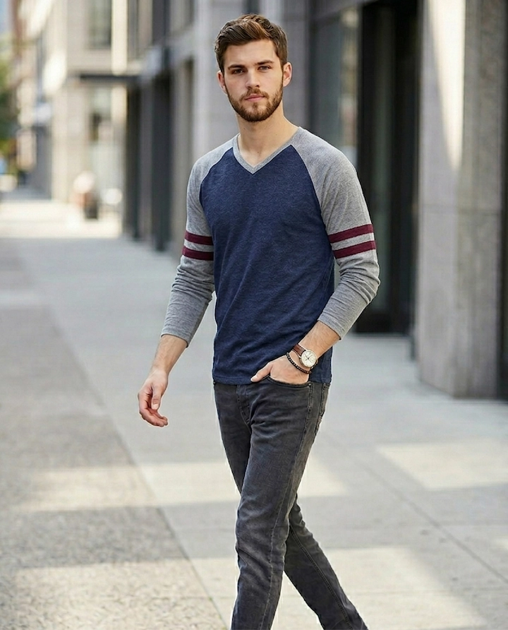 Classic round neck T-shirt featuring raglan sleeves for a sporty look and enhanced mobility. Fabric composition and weight can be customized as per client’s requirement, with shrinkage maintained within ±5% for reliable sizing. Available in tubular body fit or side-seam construction to suit different market needs.