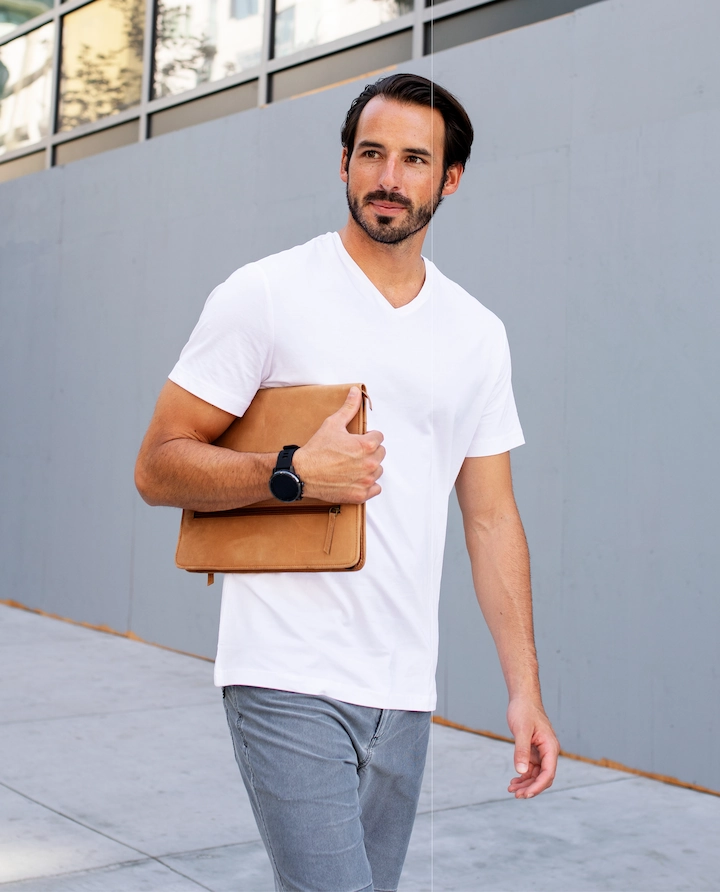 Men’s 60/40 V Neck Cotton Blend S/S Tee Shirt