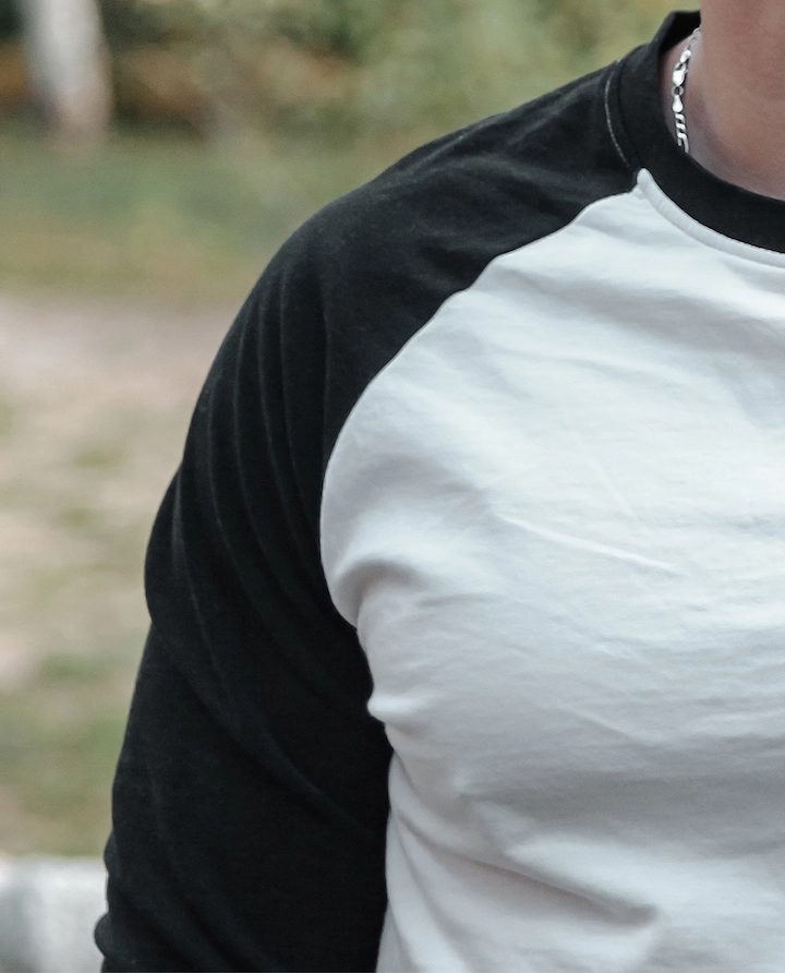 Classic round neck T-shirt featuring raglan sleeves for a sporty look and enhanced mobility. Fabric composition and weight can be customized as per client’s requirement, with shrinkage maintained within ±5% for reliable sizing. Available in tubular body fit or side-seam construction to suit different market needs.
