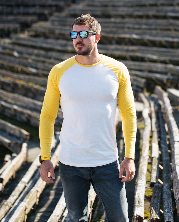 Classic round neck T-shirt featuring raglan sleeves for a sporty look and enhanced mobility. Fabric composition and weight can be customized as per client’s requirement, with shrinkage maintained within ±5% for reliable sizing. Available in tubular body fit or side-seam construction to suit different market needs.