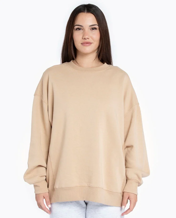Trendy and comfortable sweatshirt made from a cotton–polyester blend, offering a soft hand feel, durability, and easy care. Features terry fleece with brushed interior for added warmth and comfort.