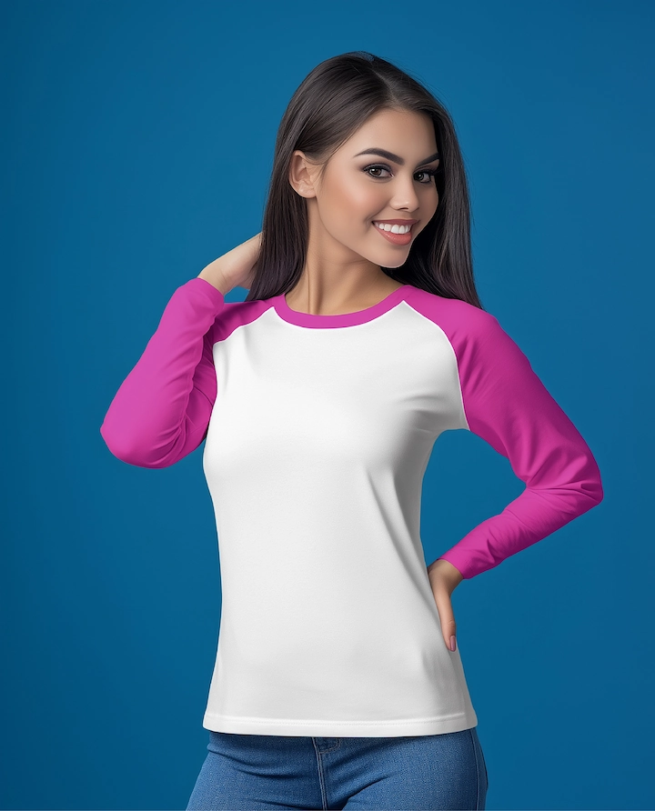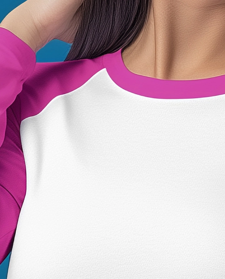 Classic round neck T-shirt featuring raglan sleeves for a sporty look and enhanced mobility. Fabric composition and weight can be customized as per client’s requirement, with shrinkage maintained within ±5% for reliable sizing. Available in tubular body fit or side-seam construction to suit different market needs.