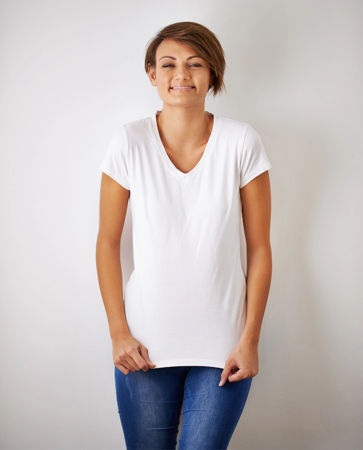 Women’s 65/35 V Neck Cotton Blend S/S Tee Shirt with Raglan Sleeves